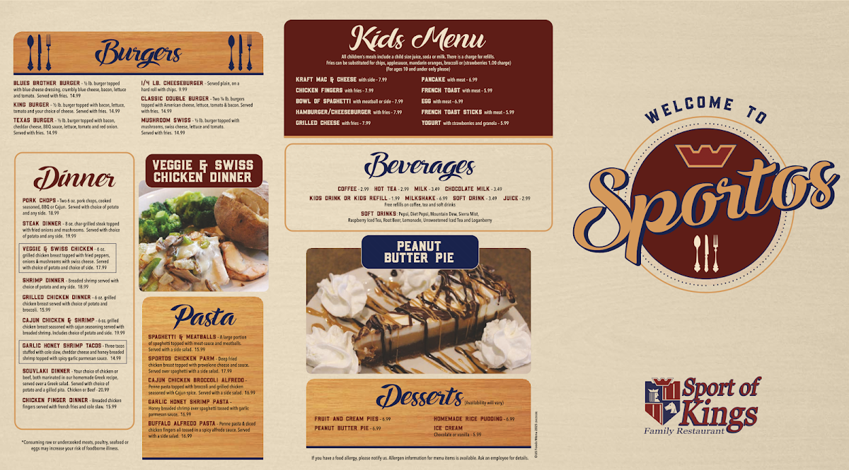 For the younger guests, the kids' menu features favorites like Kraft Mac & Cheese and Chicken Fingers, all priced under $8.00. Sweet cravings are covered too, with delightful options like Chocolate Chip Pancakes and classic French toast. Diners rave about the excellent service and generous portions, ensuring every visit is a memorable family outing. Whether you're indulging in a burger or comforting pasta, Sport Of Kings promises a satisfying culinary experience.